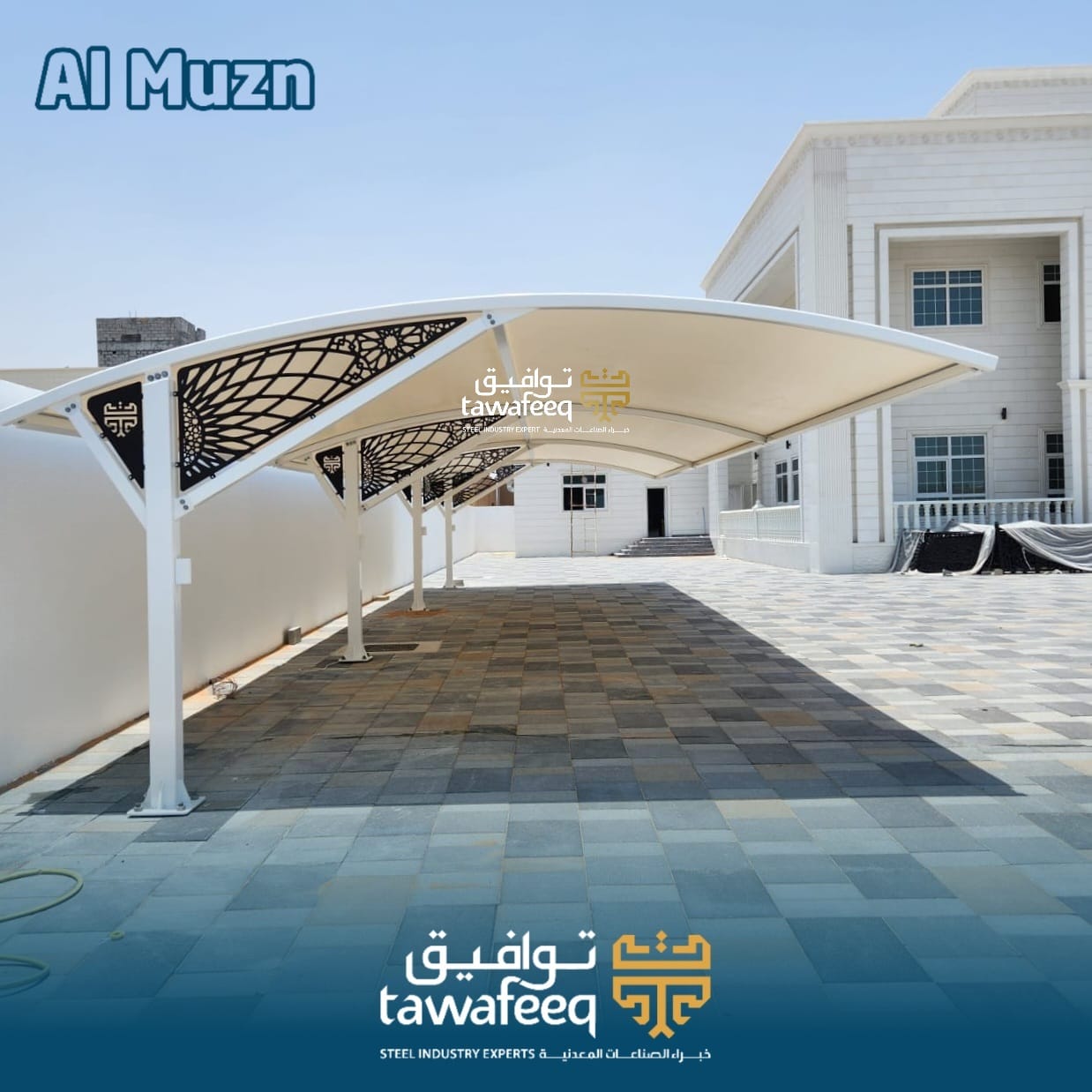 With its modern design and sturdy square columns, the Al Muzn Cantilever car parking shed offers an elegant appearance that complements both modern and classic architecture. What sets it apart is its decorative rear detail that adds a unique aesthetic dimension, making it not just a car Cantilever but an architectural element that enhances the value of the space. Thanks to its high quality and attention to detail, it provides reliable protection for vehicles against sunlight and weather changes, all while reflecting refined taste. Crafted with precision and premium materials, Al Muzn seamlessly blends durability with style, offering a lasting statement of elegance and functionality.