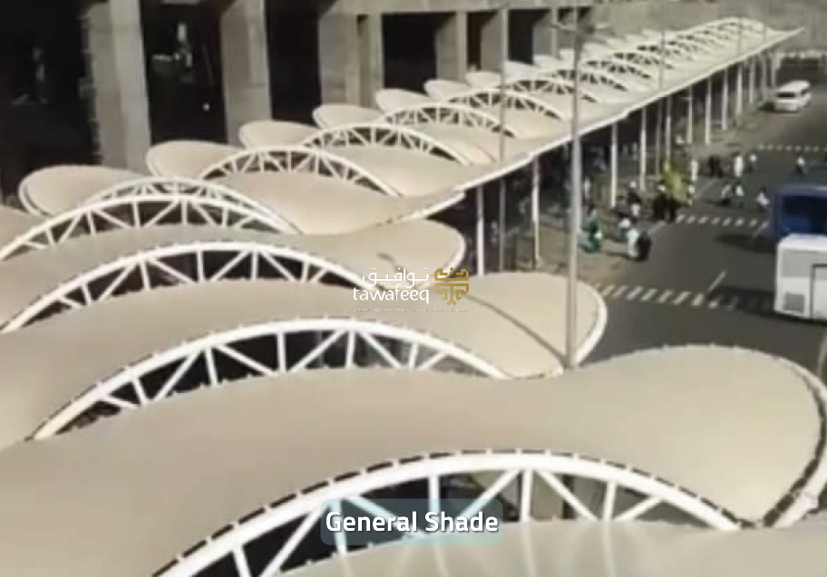 Canopies from Tawafiq Metal Industries are not just ordinary canopies; they are a symbol of strength and durability that withstand weather and environmental challenges, delivering unmatched stability. Since their inception, no breakage incidents have been recorded due to winds or storms. The fabric used is PVDF, which is fire-resistant and blocks ultraviolet rays, providing added protection and high durability. The structure is made of hot-dip galvanized steel to resist rust and corrosion, and it is finished with a high-quality powder coating for long-lasting protection and an elegant appearance. Each canopy is engineered.