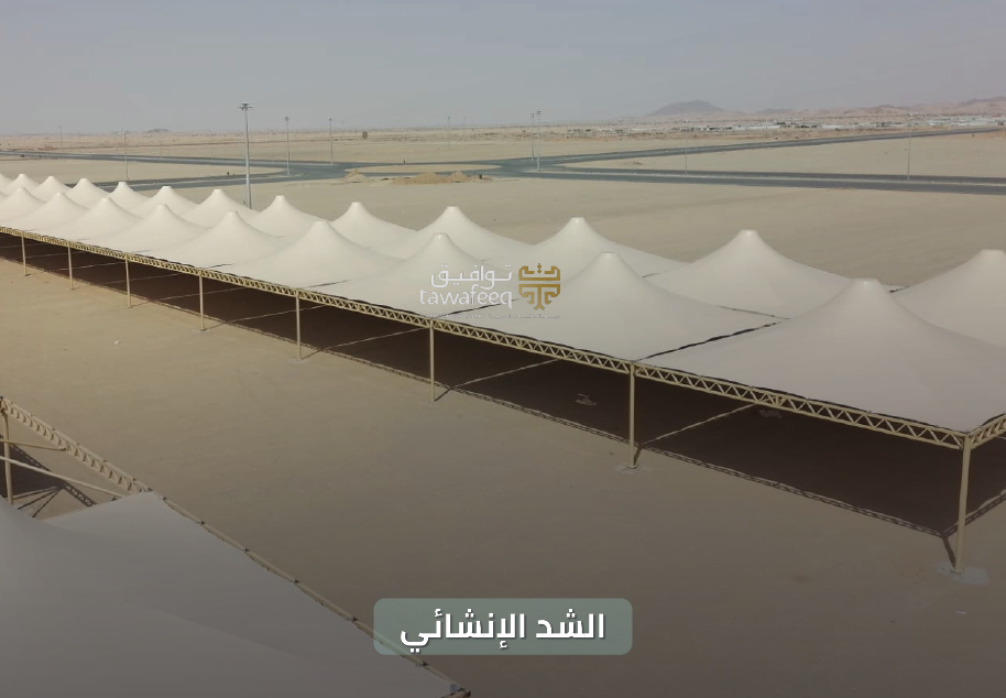 Cantilever with a contemporary architectural design based on tensile structure technology using high quality fabrics stretched over strong metal frames to create unique architectural forms. They are distinguished by their lightweight and ability to cover large areas with minimal columns giving the space a sense of openness and exceptional elegance. These Cantilever are the perfect solution for stadiums parks public squares parking areas and large scale projects combining practical durability with visual appeal that adds remarkable architectural value. Each structure is engineered with precision to ensure superior performance against wind.
